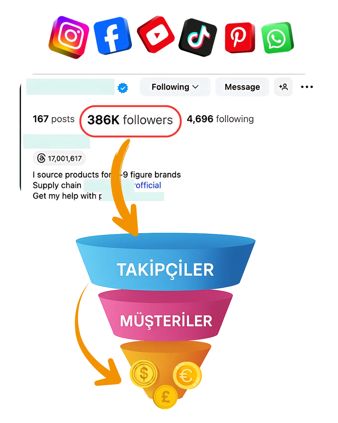 (Instagram, Facebook, TikTok, LinkedIn, YouTube, Google Işyeri, Pinterest...)